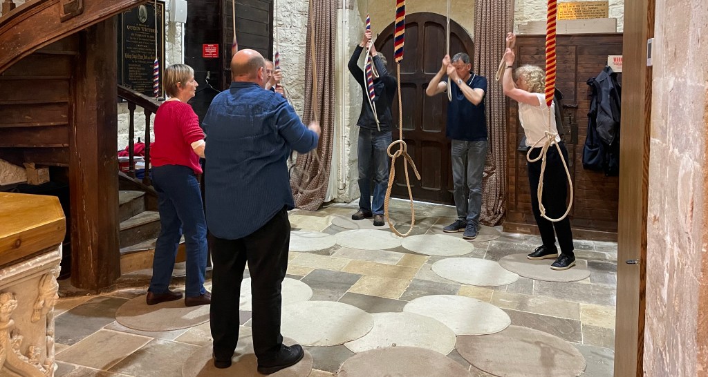 Ringing is also about teamwork: watching, listening and co-ordinating your actions with the other ringers to produce a harmonious sound. Because you’re ringing with others, it’s also a very sociable activity — our midweek practice almost invariably ends in the local pub. When travelling you can make contact with the bell ringers where you’re staying, and perhaps join in their practice session or even in the pre-service ringing. Although bell ringing is largely confined to the UK, one of our members has found himself ringing for a Sunday service as far away as Canada.